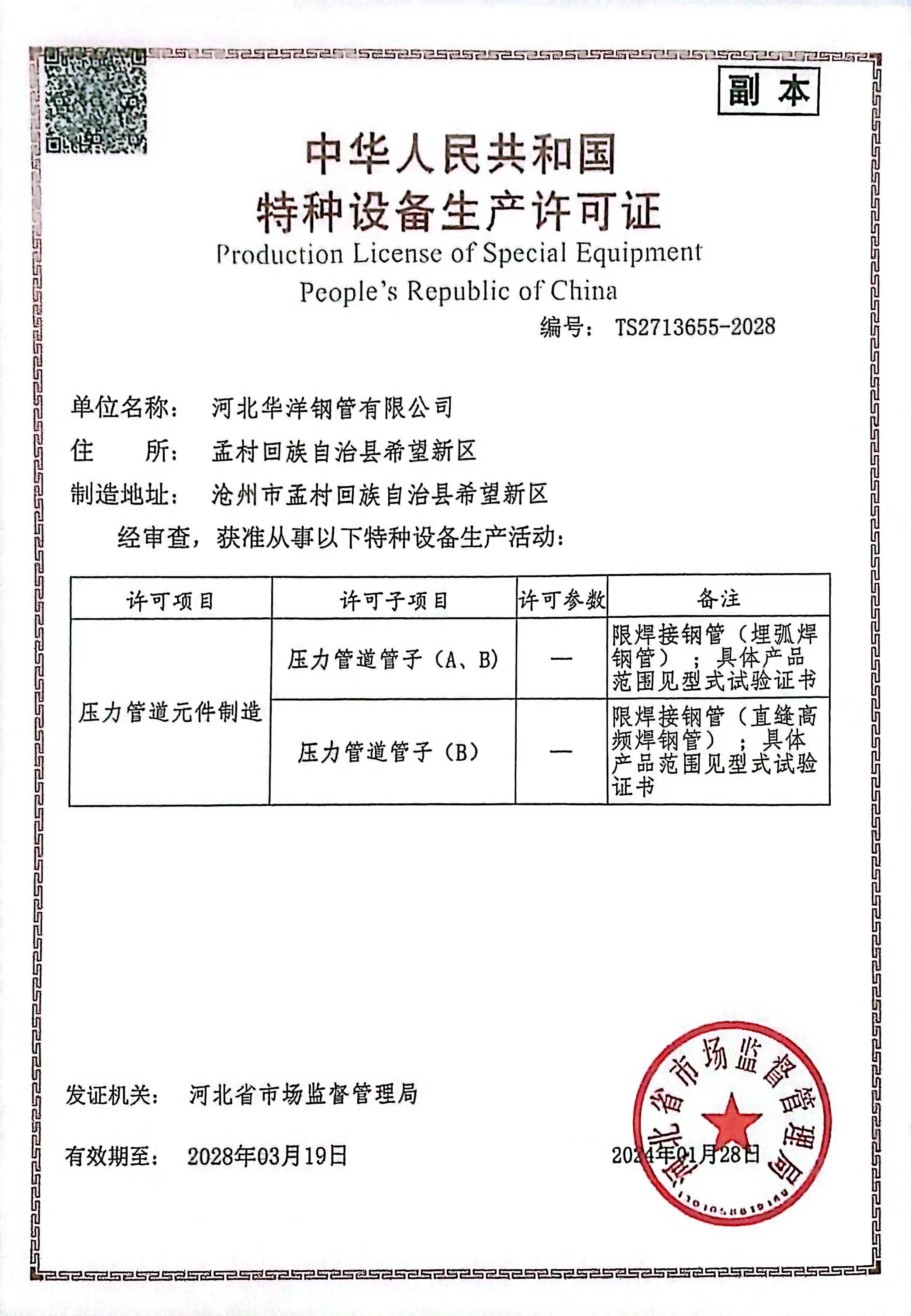 公司現有17條新型的自動化鋼管生產線,包括Φ73-660.4高頻直縫焊鋼管生產線14條、Φ406.4-Φ1422.4直縫雙面埋弧焊鋼管生產線3條,并配備有一條防腐生產線,可進行3PE、2PE、FBE、2PP、3PP防腐處理,同時還可提供鋼管深加工服務。公司擁有先進的理化實驗室,可承擔鋼管的各項物理及化學檢測與試驗。公司先后取得了ISO9001質量管理體系認證、ISO14001環(huán)境管理體系認證、ISO45001職業健康安全管理體系認證、特種設備制造許可證、API5L和API2B認證證書、歐盟CE認證、俄羅斯GOST認證、中海油入網證、安全生產標準化二級企業等標準質量體系認證。
